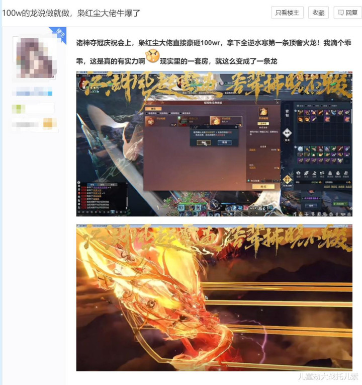 凤凰彩票welcome 10天花300万硬抗MMO三大神豪, 枭红尘又让喷子们破防了
