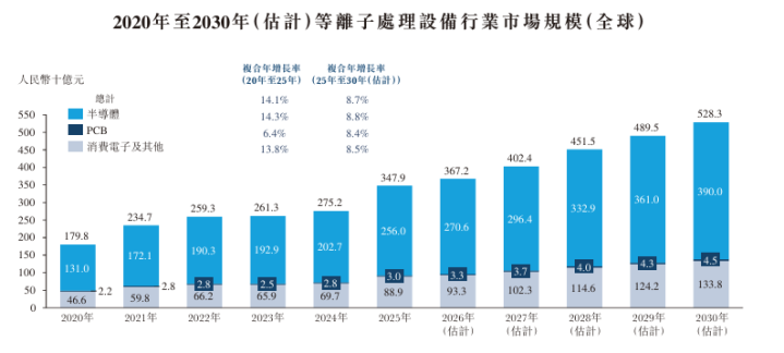 等离子惩处设备凭据其下流行业,主要可分为三个细分商场:半导体、PCB、糜费电子偏执他。于2020年至2025年,大众等离子体惩处设备的商场限度由东说念主民币1,798亿元增长至东说念主民币3,479亿元,凤凰彩票官方网站期内复合年增长率为14.1%。
