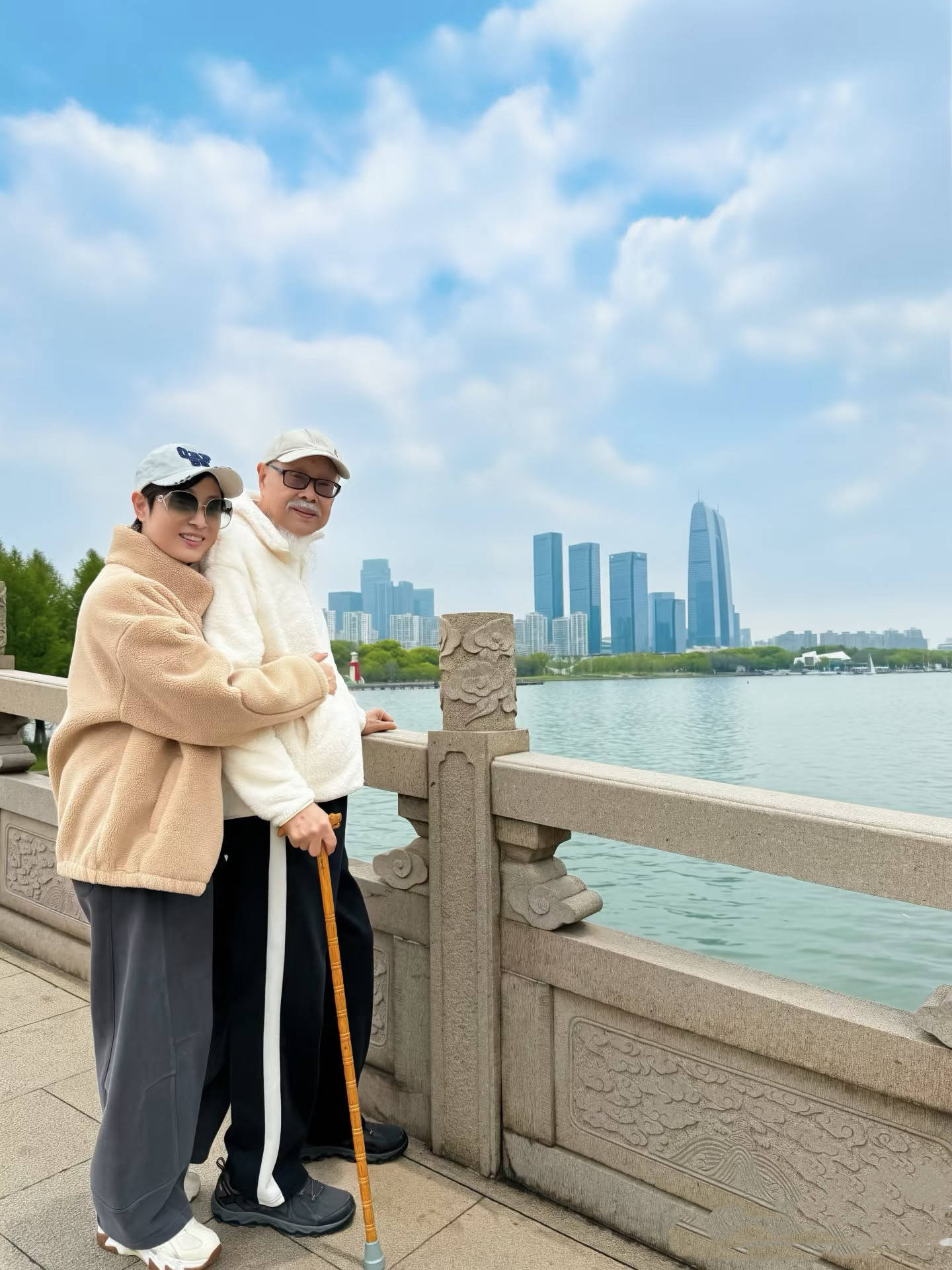 凤凰彩票官方网站 57岁陈法蓉带89岁老爸游苏州!穿亲子装脸型复制粘贴,老爸拄拐爬坡比年青东说念主还精神
