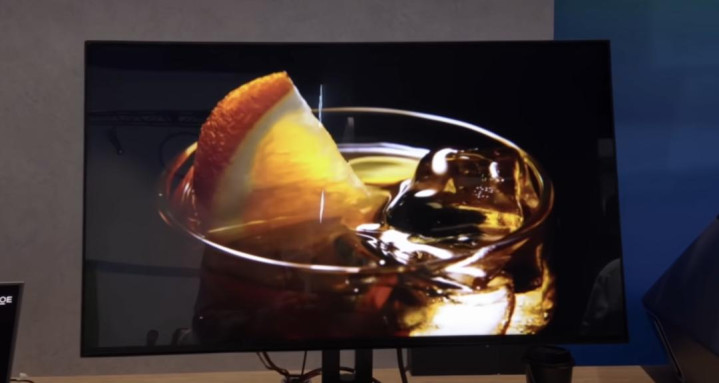除了显卡, 8K 露馅器方面,客岁,京东方在 SID 海外露馅周上,展示过一款 31.5 英寸,相沿 8K 120Hz 的液晶面板,并声称年末量产,固然这款居品刻下还莫得上市,但京东方显著在 8K 方面走得比较远。