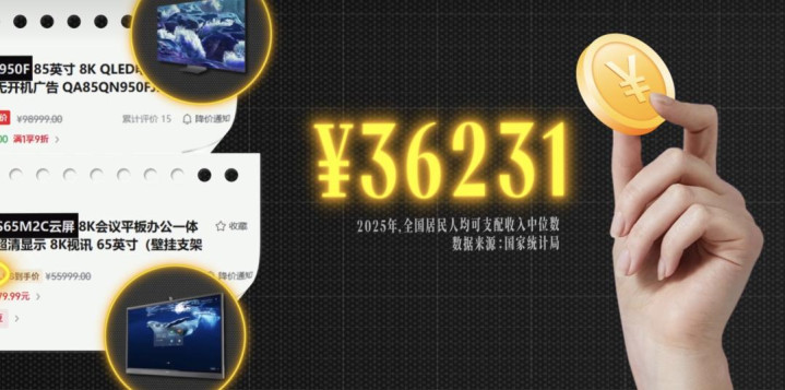 而笔据国度统计局数据,2025 年东说念主居可主管收入的中位数,也只消 36231 元,这意味着,世界刚刚超越一半的东说念主,辛贫贫穷当一年牛马,才能一台三星 8K 电视。