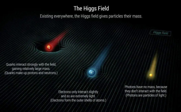咱们不错用一个普通的比方,来交融希格斯机制:希格斯场就像一派广博广阔的海洋,充满了所有这个词寰宇。夸克、电子等基本粒子,就像在这片海洋中拍浮的东谈主,它们会受到海水的冲击和阻力,这种阻力会让它们获取一种访佛“势能”的能量,而这种能量体目下粒子身上,等于咱们所感知到的“质地”——粒子受到的阻力越大,所具有的质地就越大;反之,受到的阻力越小,质地就越小。而光子、胶子等粒子,就像“不会被海水影响”的存在,它们不错在这片“海洋”中毫无终止地穿行,不受任何阻力,因此它们不具备静止质地,只不错光速畅通。