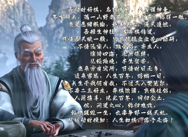 比拟于墨医生,何仙师还有些不同。在年少时,何仙师是一个名震乡野的神童棋手,因为碰见一个会法术的老说念,他才弃棋修说念,放胆家东说念主修说念,但因为禀赋一般,终究是半生勤苦。这么的景象下,何仙师偶尔也念念过赋闲百年的过平凡的糊口,但依然念念要争那一线天机,因为他知说念:东说念主生如棋,落子无悔!
