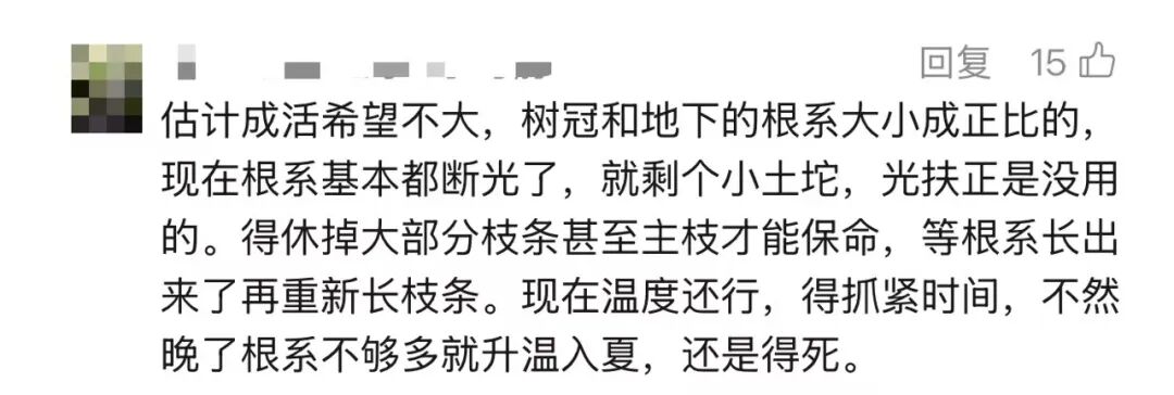 “念念到树枝会断,没念念到整棵树给干倒了。”