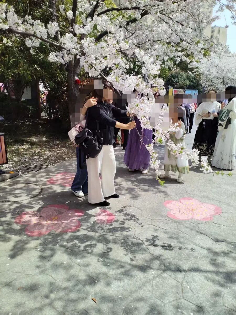 不外,部分旅客为了拍摄“氛围感”短视频、唯好意思像片,看成不妥,对樱花树变成了成功伤害。在一处东说念主流量较大的樱花林,几名身着汉服的年青东说念主正围着一棵老樱花树“创作”。其中一东说念主双手牢牢抱住树干,身段走动发力摇晃,正本相识的树干剧烈踟蹰,枝端的花瓣如雪片般大面积飘落,在地上快速积起薄薄一层。附近的同伴则举入辖下手机,从各个角度拍摄“花瓣飞雪”的殊效,嘴里还控制喊着“再摇要点,服从更棒!”