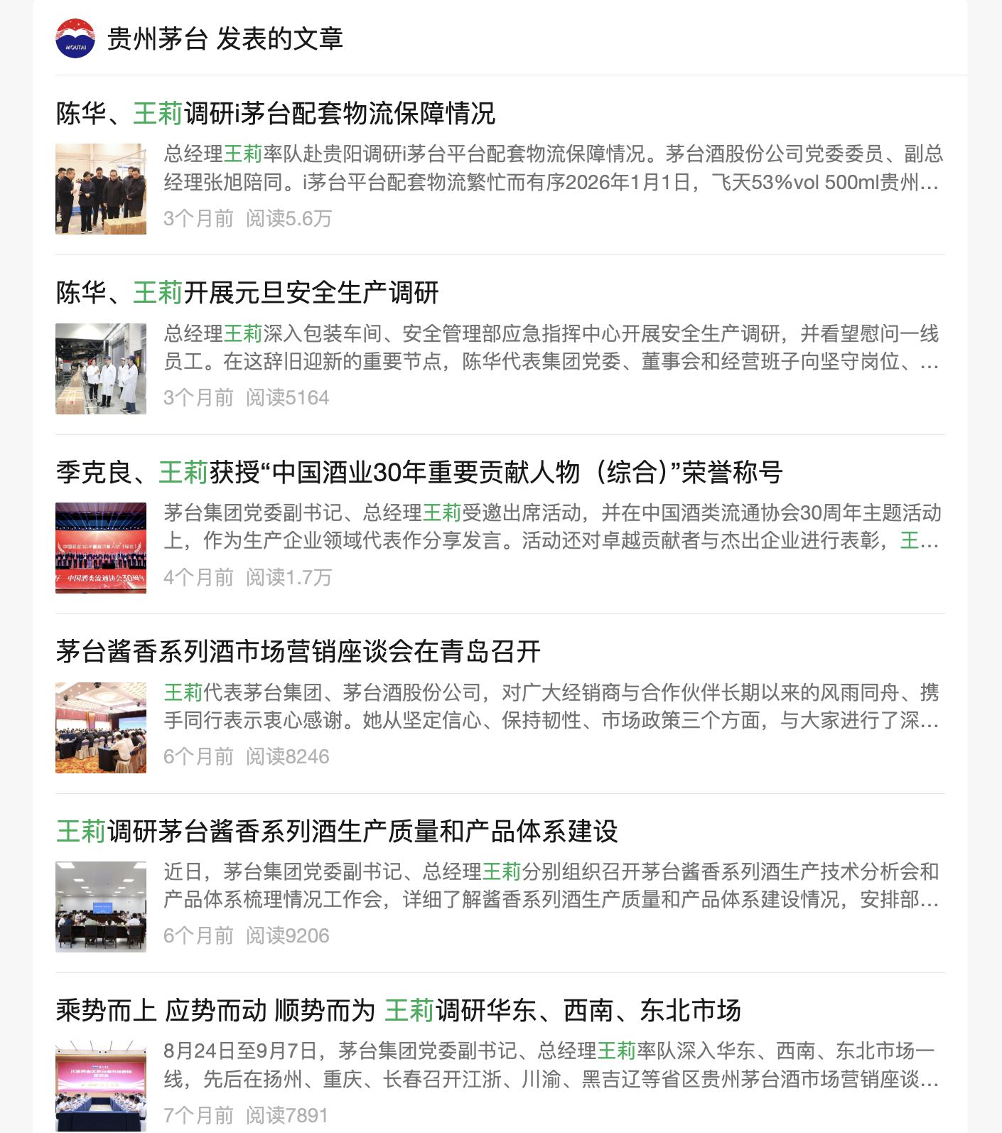 直至2023年8月,贵州省东说念主民政府发布任职见告,保举王莉为茅台集团董事、副董事长、总司理东说念主选,王莉崇拜接替李静仁出任茅台集团总司理一职。
