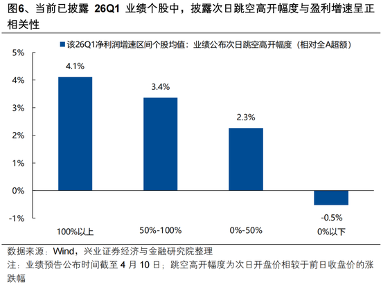 此外,跟着一季报事迹预报密集表现期开启,商场启动对景气个股予以积极订价,依据景气从下到上选股的有用性也在增强。参预一季报事迹预报密集表现期,阻挡4月10日,已有91家A股上市公司表现26Q1事迹(含预报、快报)。面前已表现事迹个股中,事迹表现次日跳空高开的幅度与其盈利增速显着正联系,标明商场启动对景气个股予以积极订价。跟着风险偏好开导、里面景气痕迹加多,后续依据里面景气从下到上选股的有用性也将缓缓增强。面前来看,26Q1表现事迹增速较高、商场订价较为积极的领域主要集中在电子(PCB、存储、国产算力)、新动力、有色(铝、黄金、动力金属)、化工、医药、机械开导(数控刀具、工程机械),以及水泥、啤酒、券商等细分见解。